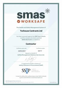 Techouse Contracts Ltd has been awarded a SMAS WORKSAFE Contractor category accreditation part of the SSIP, following a full assessment of our system of work and our approach to the H&S, Quality and Environment